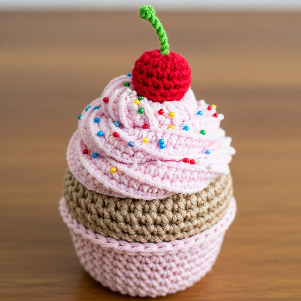 This cupcake design features a textured base, a fluffy top, and decorative sprinkles. Add a cherry on top for a realistic dessert look.