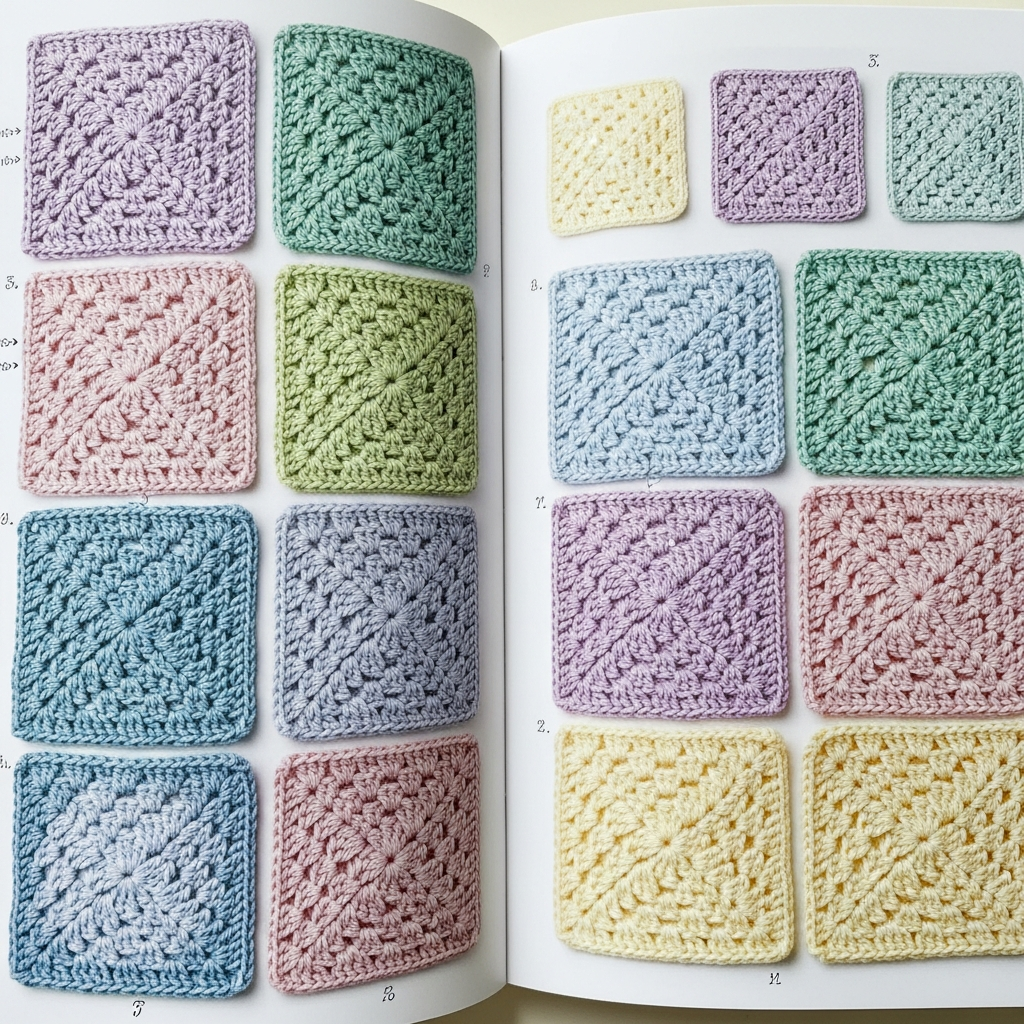 Begin by crocheting the square base pages. Chain 51 stitches and work 54 rows of single crochet to form a sturdy square. Make six identical squares to create the full book.