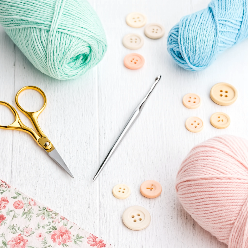 Start by gathering your materials. You’ll need soft cotton-acrylic yarn, a 2.25 mm crochet hook, scissors, a needle, and extras like velcro, buttons, and canvas for structure. Choosing pastel shades will give your quiet book a soft and charming look.