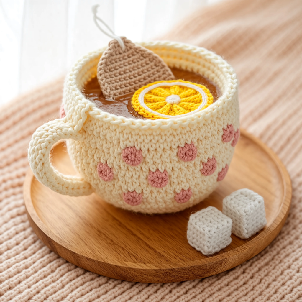 The tea cup page includes a detailed cup, handle, tea bag, lemon slice, and sugar cubes. This adds both texture and interactivity to your quiet book.