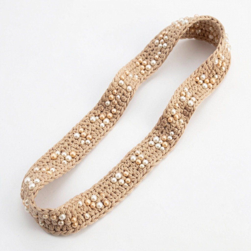 Using a smaller hook, create a foundation single crochet chain for your strap. Then work rows of stitches including a decorative bead stitch pattern.
