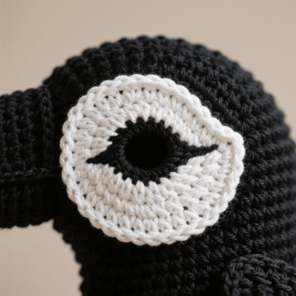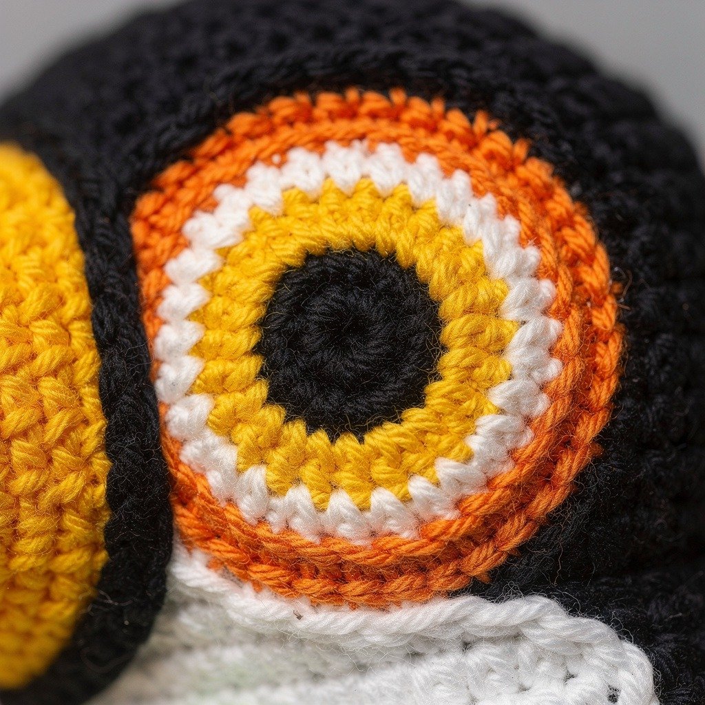 Each eye is slightly different, giving your toucan a more natural and expressive look. After finishing, turn the eye piece and shape it with slip stitches.