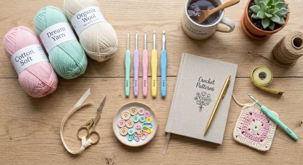 - Crochet hooks (2.2mm, 3mm, 3.5mm)