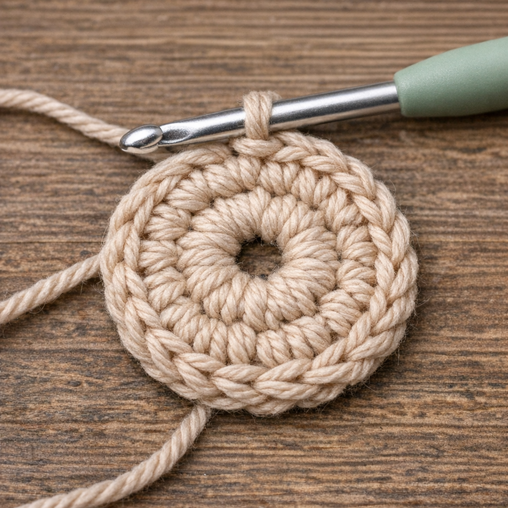 Start your bag with a magic ring and single crochet stitches, gradually forming a circular base. These first rounds build the structure and create the foundation for the textured design.
