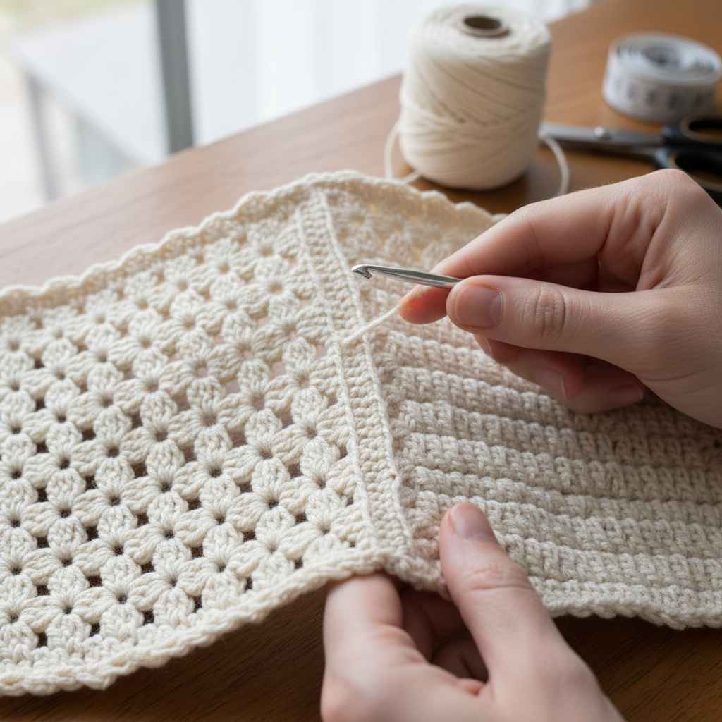 If your size differs, simply adjust your hook size or tension to match the pattern measurements.