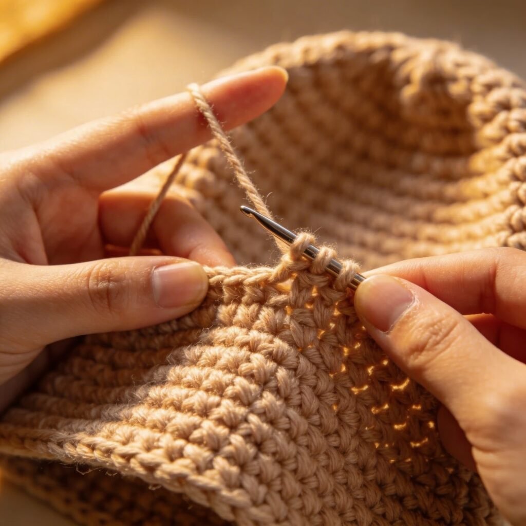 Repeat the crown rows based on your chosen size to ensure a comfortable fit.
