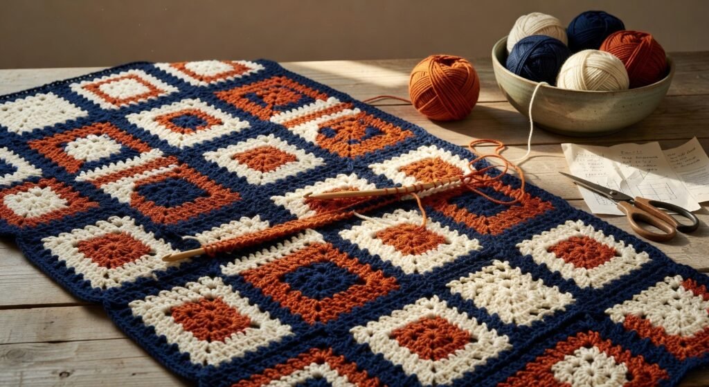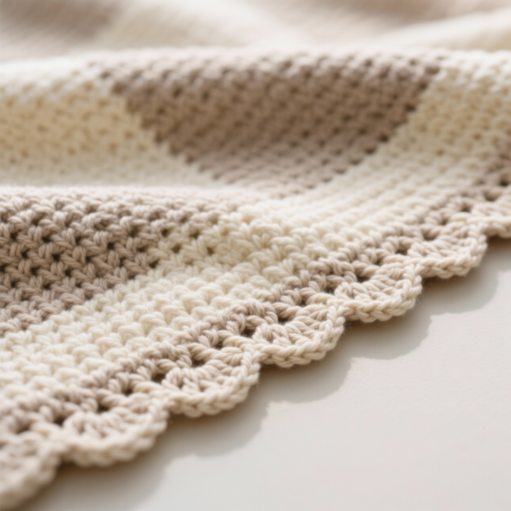 Repeat this sequence multiple times to build the full blanket length. This creates the signature striped crochet blanket look.