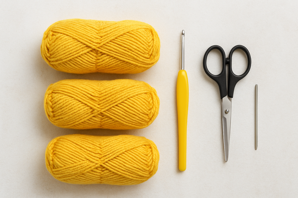 - Worsted weight yarn (Weight 4) – approx. 3,060 yards