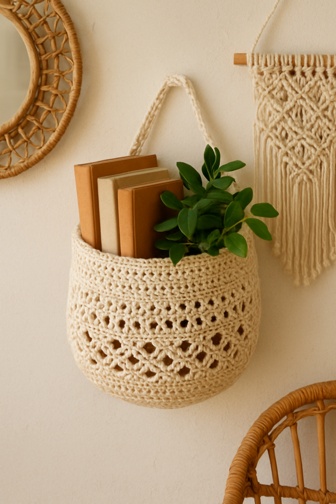 🧺 Crochet Boho Book Nook Pattern – Stylish Hanging Organizer