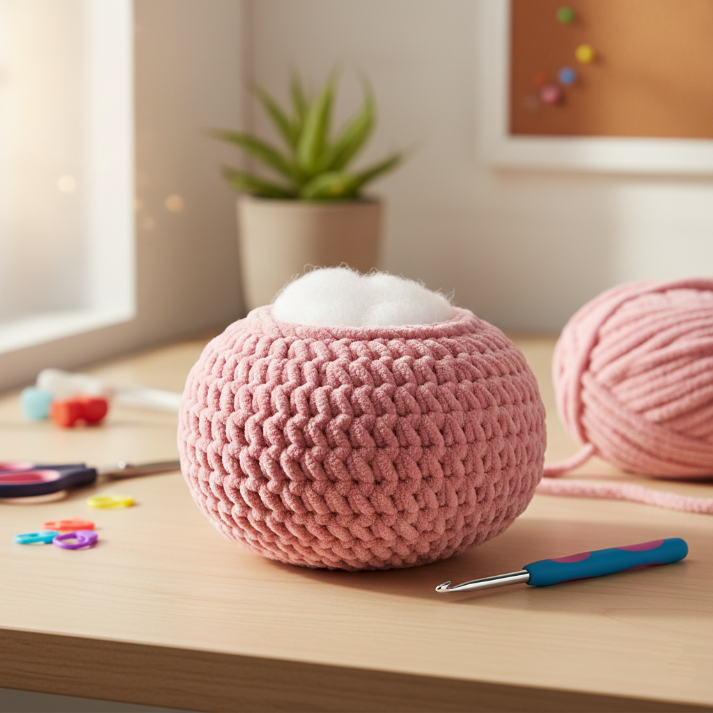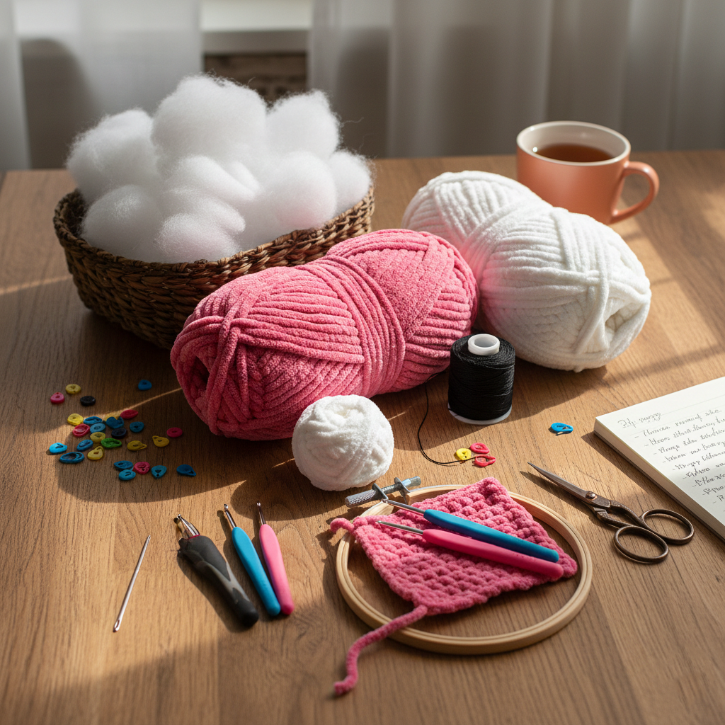 You’ll also need a 3.5 mm crochet hook (adjust based on tension), stitch markers, fiberfill stuffing, sewing needles, and scissors.