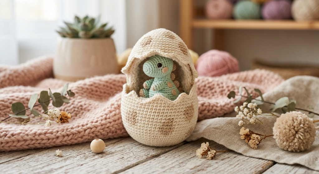If you love amigurumi crochet patterns and cute nursery toys, this Baby Triceratops stacking toy is the perfect project. Designed to fit inside a crochet egg, this pattern combines a dinosaur plush, stacking rings, and textured details in one adorable handmade gift.
