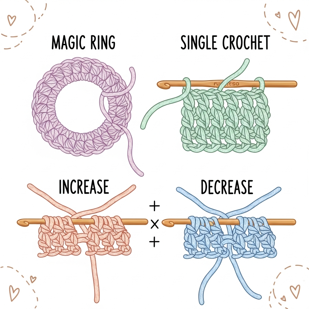 Like most amigurumi patterns, the Beatrix witch uses common crochet abbreviations. Understanding these stitches will make following the pattern much easier.
