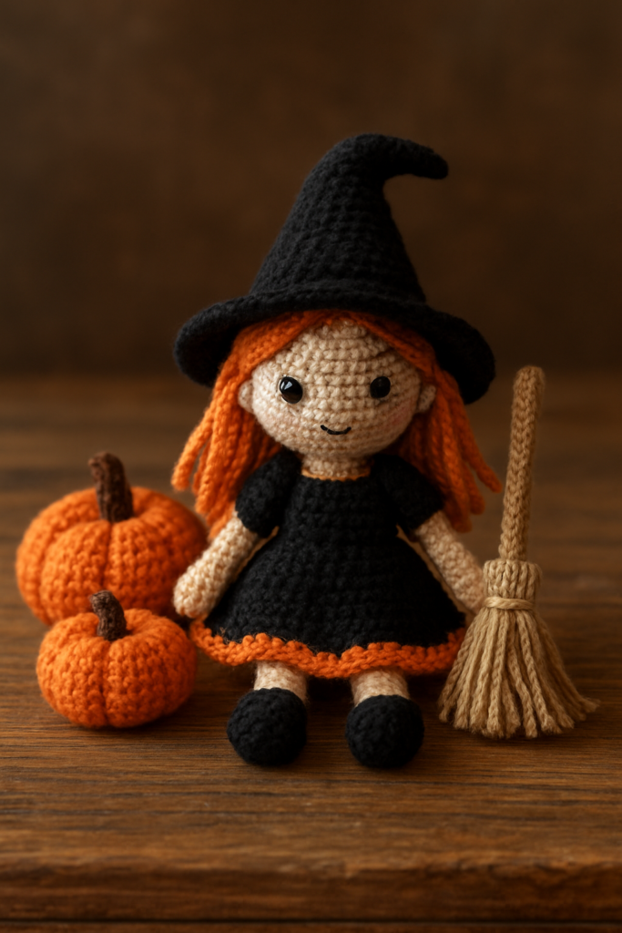After assembly, your Beatrix the Little Witch crochet doll will be ready for decoration, gifting, or display.
