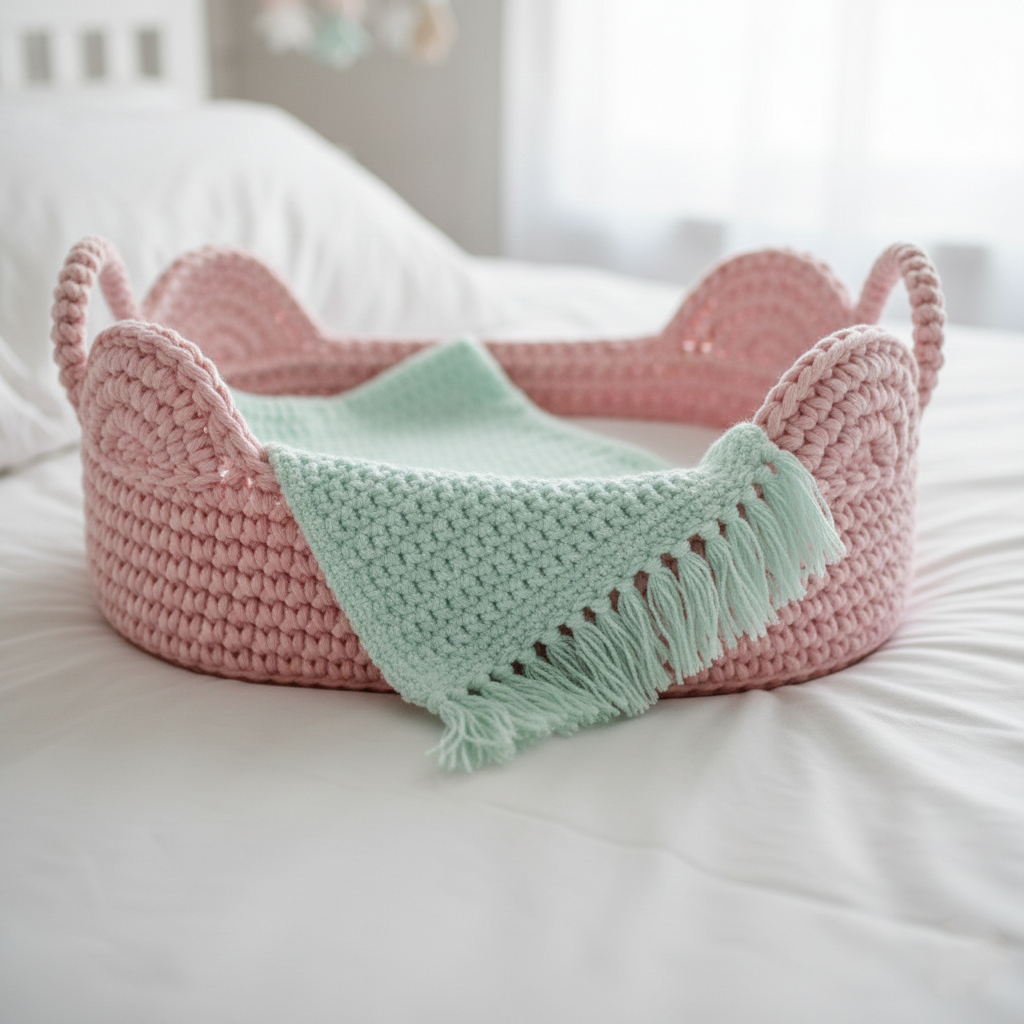 Click below to download the full PDF pattern and crochet this adorable baby bed set offline anytime.