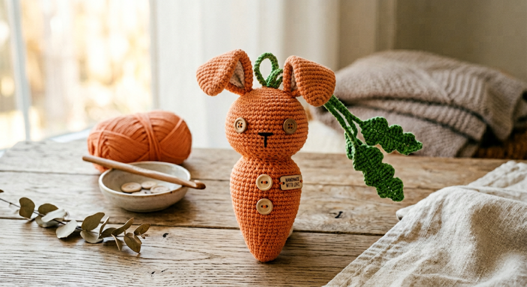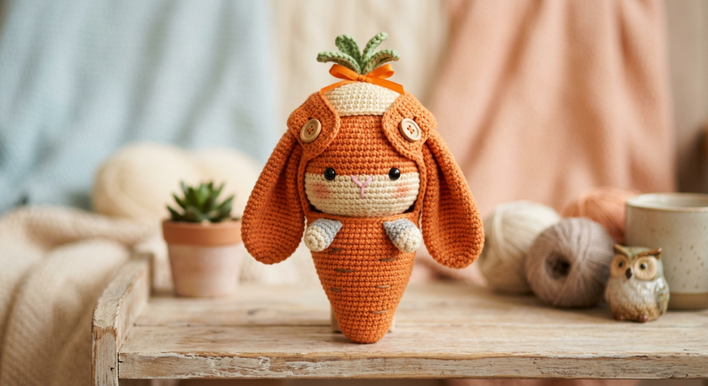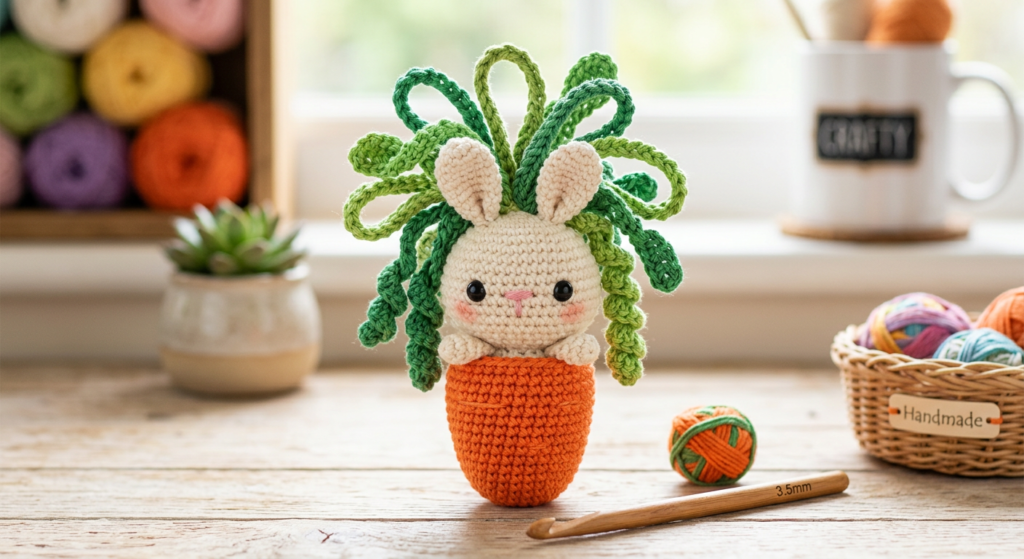 This unique feature makes the pattern highly searchable for creative crochet bunny ideas, carrot crochet pattern, and Easter amigurumi projects.