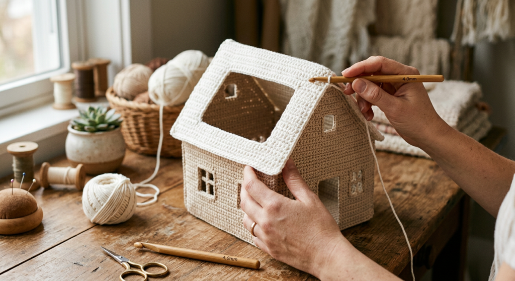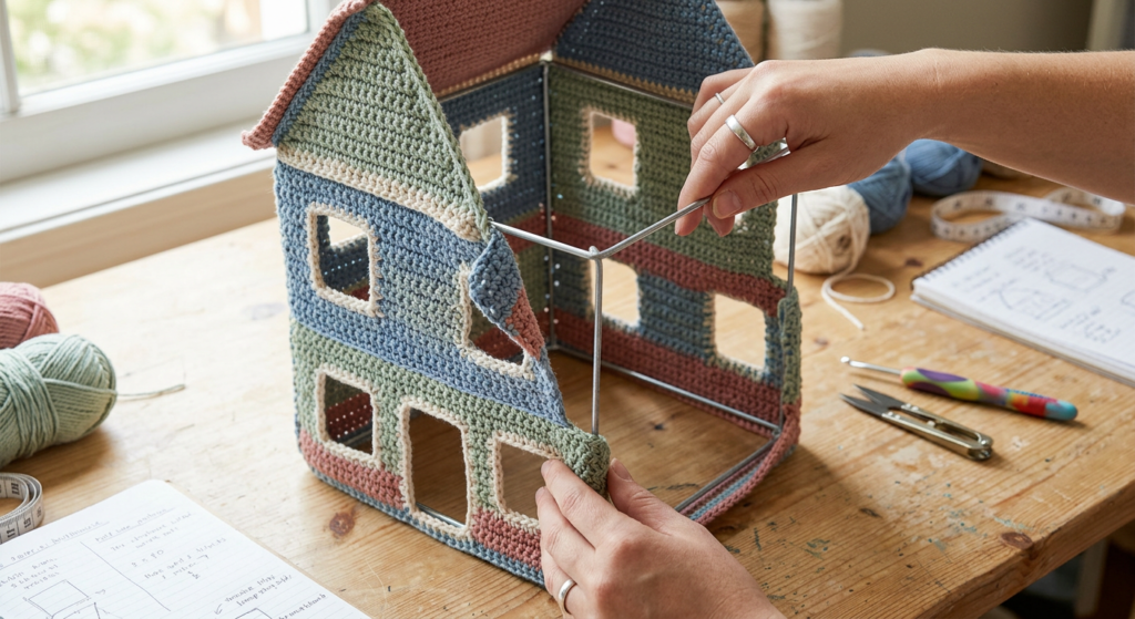 This step helps beginners understand how to build 3D crochet structures and is essential for creating realistic amigurumi houses.