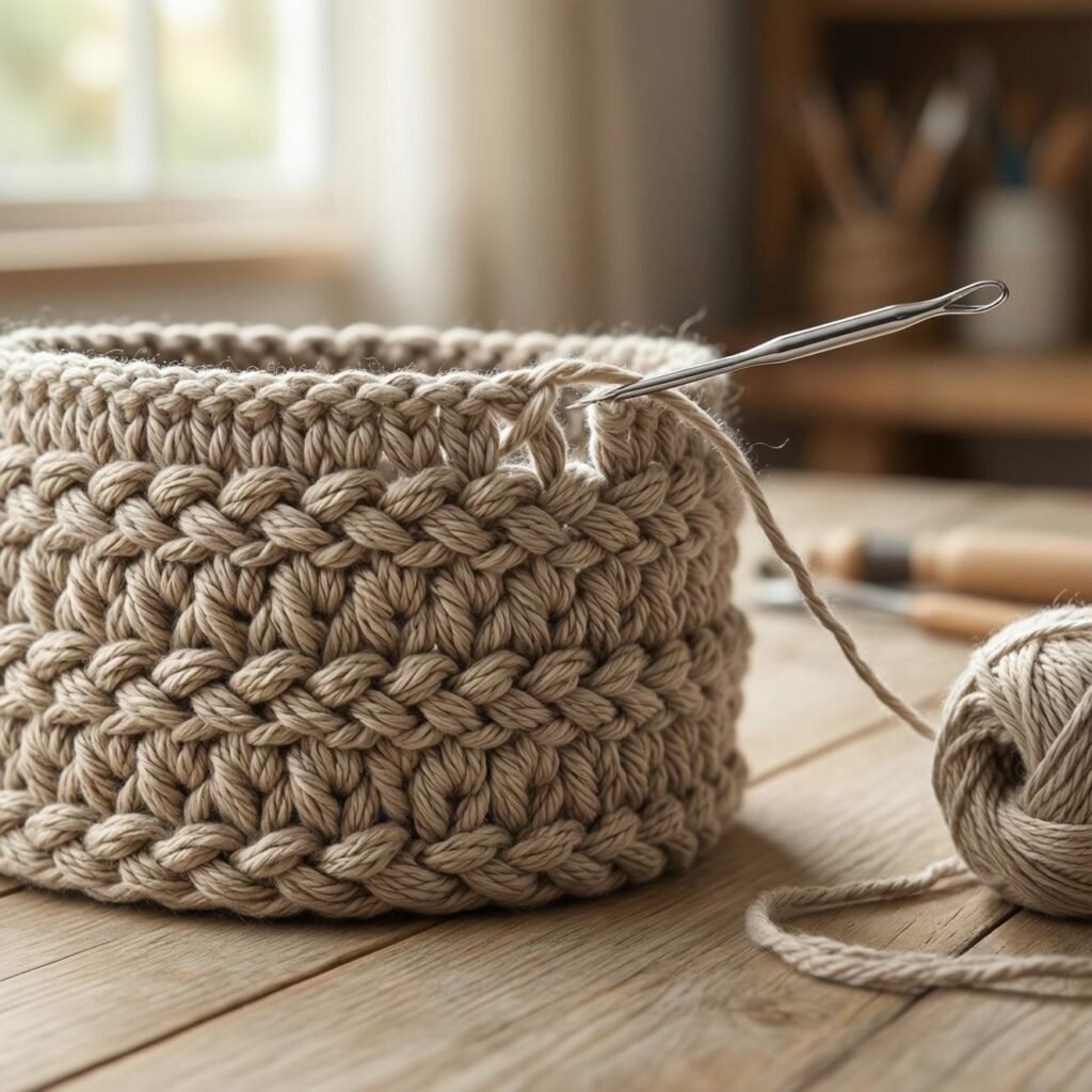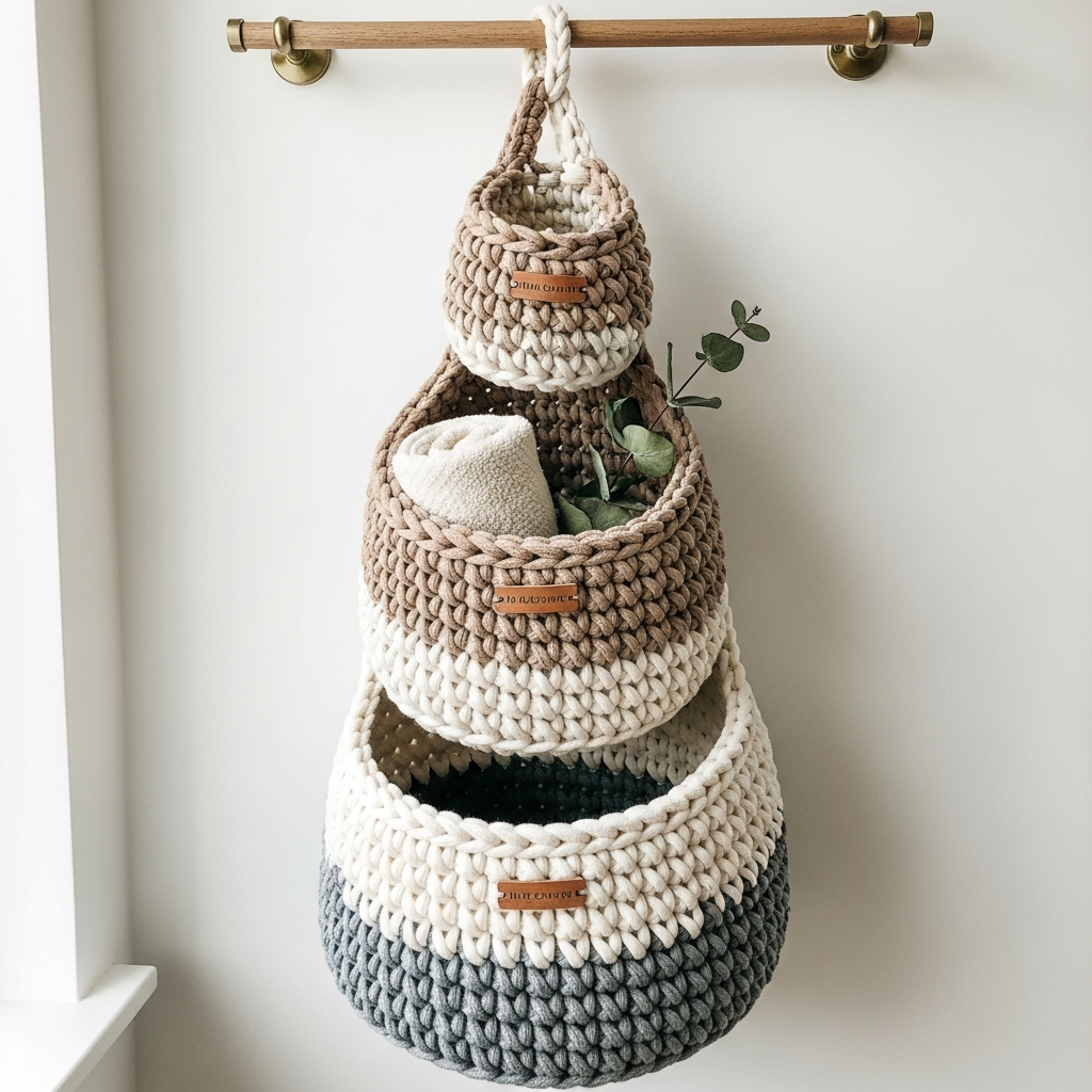 Once completed, you’ll have a beautiful set of handmade crochet baskets perfect for organizing your home.