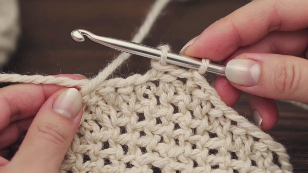 - Work double crochet stitches across the row