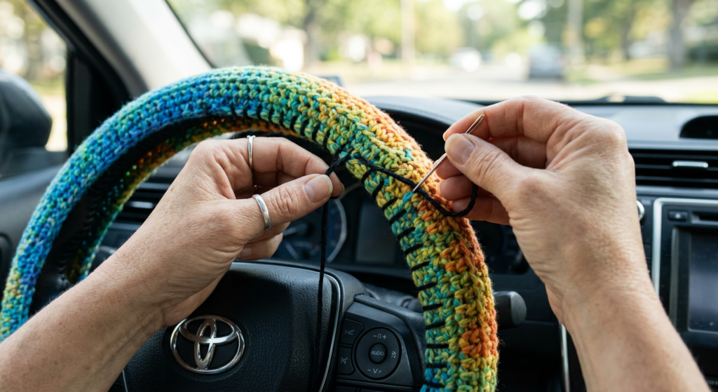 This crochet daisy steering wheel cover pattern is perfect for adding handmade charm to your car. It’s colorful, customizable, and makes an amazing gift for teens, college students, or flower lovers.
