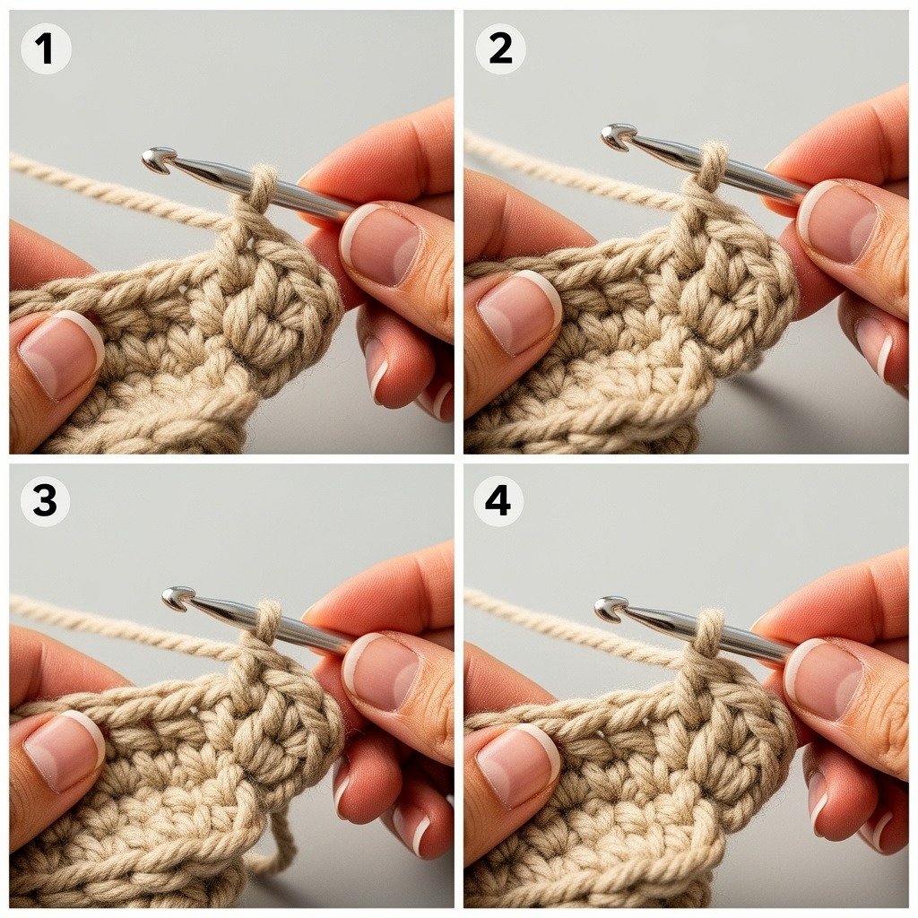Continue repeating this pattern until the panel becomes long enough. The last stitch of each row should be crocheted slightly to the side to maintain the pattern shape.