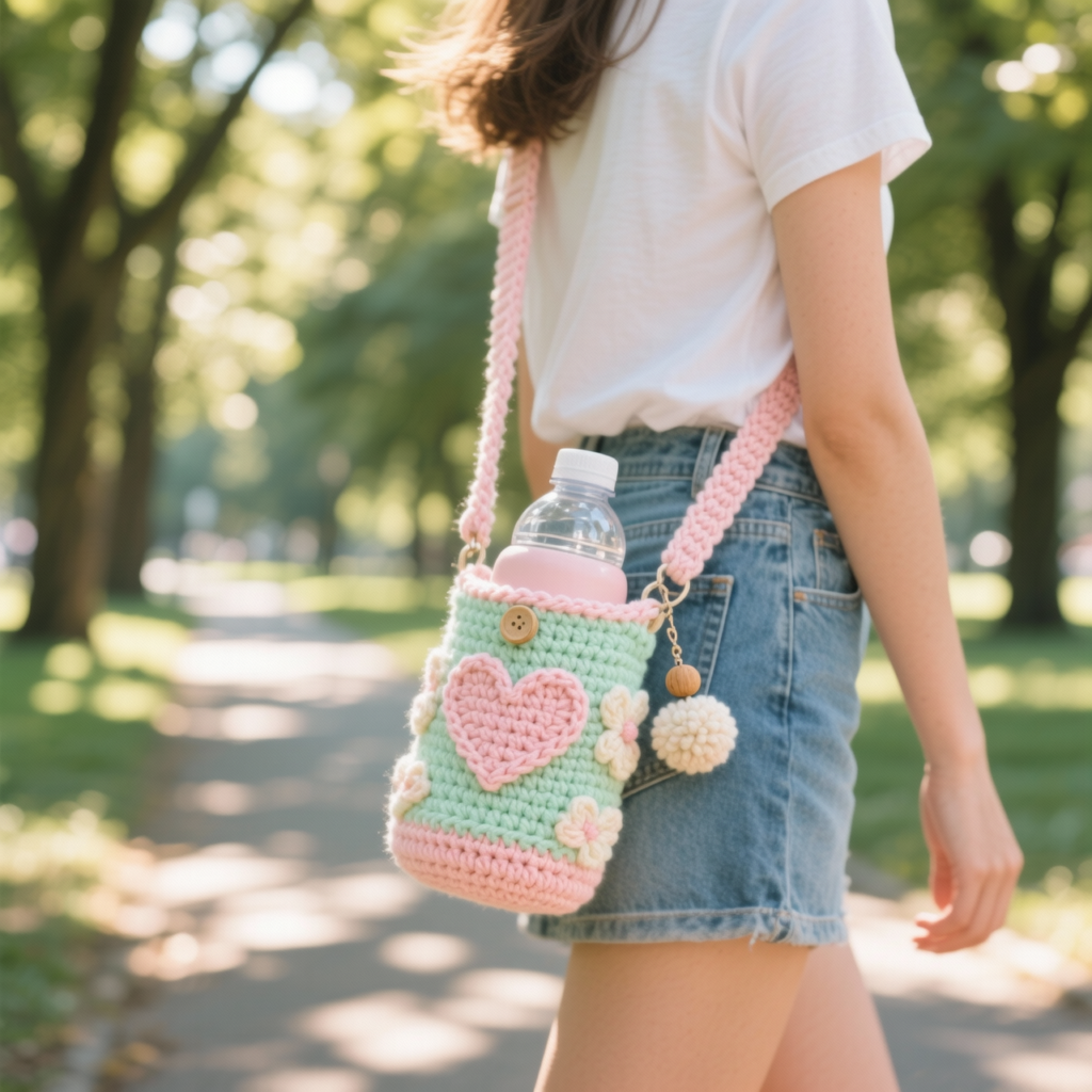 This crochet project is not only adorable but also practical. The bottle cover protects your bottle while adding a fun handmade accessory to your daily routine.