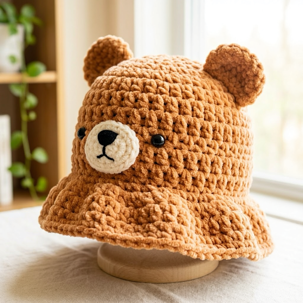 Cute Crochet Bear Bucket Hat Pattern (Beginner Friendly)