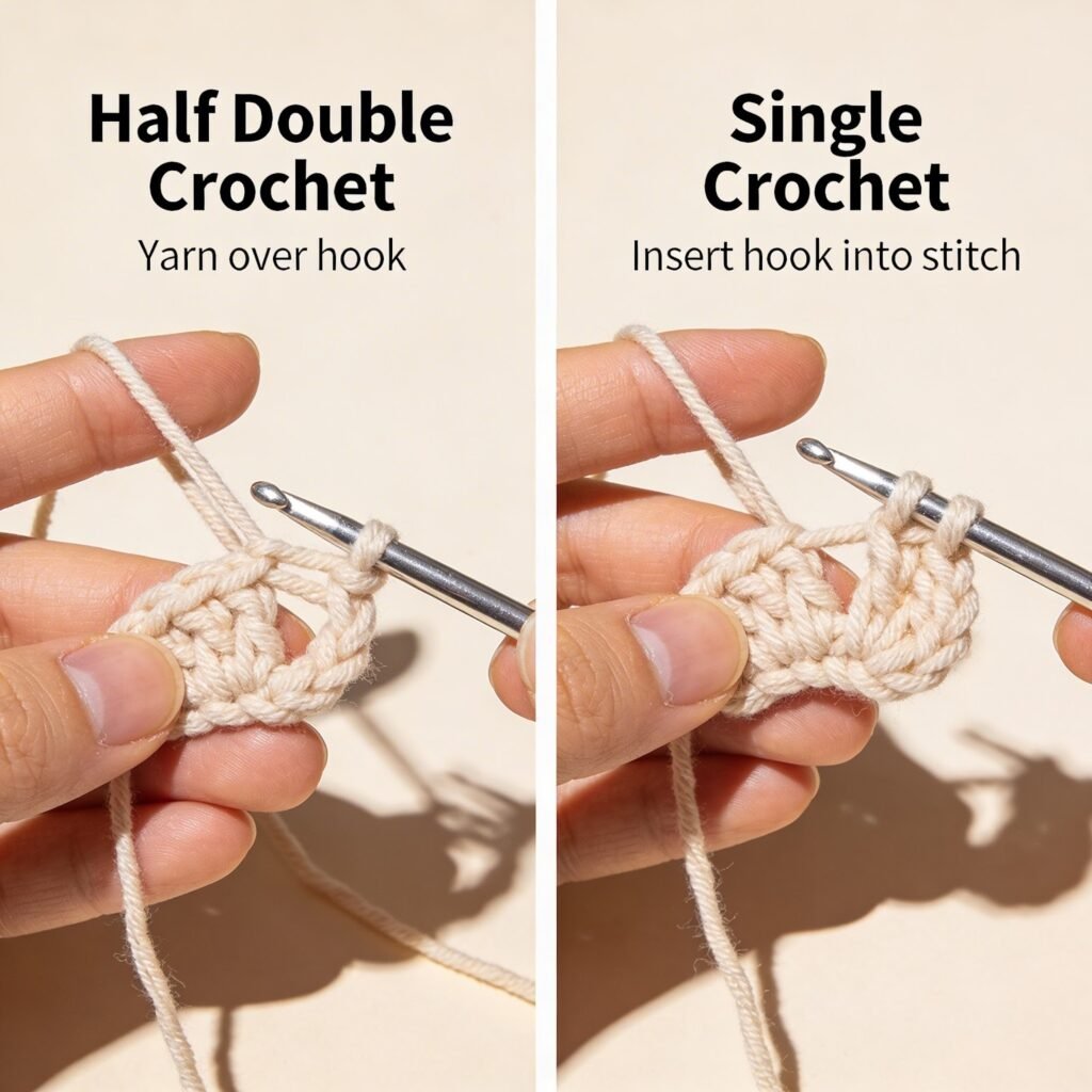 - hdc – half double crochet