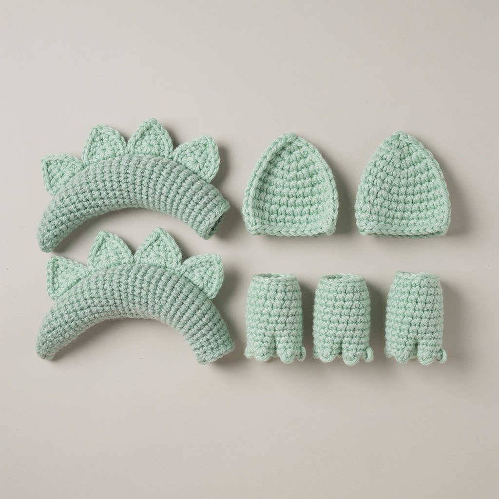 To complete the dragon character, crochet small spikes, ears, and legs. These details give the backpack its playful fantasy style.
