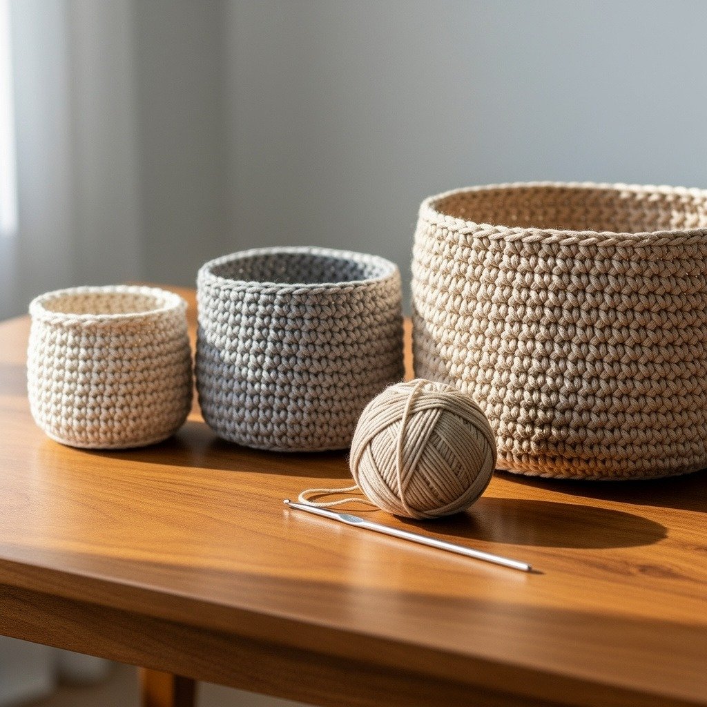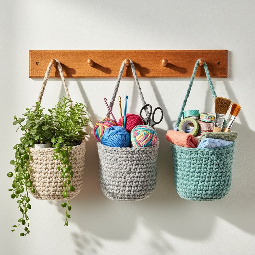 This tutorial shows you how to crochet a set of three hanging baskets using simple stitches like single crochet and double crochet. The baskets are worked in a spiral and finished with a strong hanging loop so they can easily be displayed on hooks or wall racks.