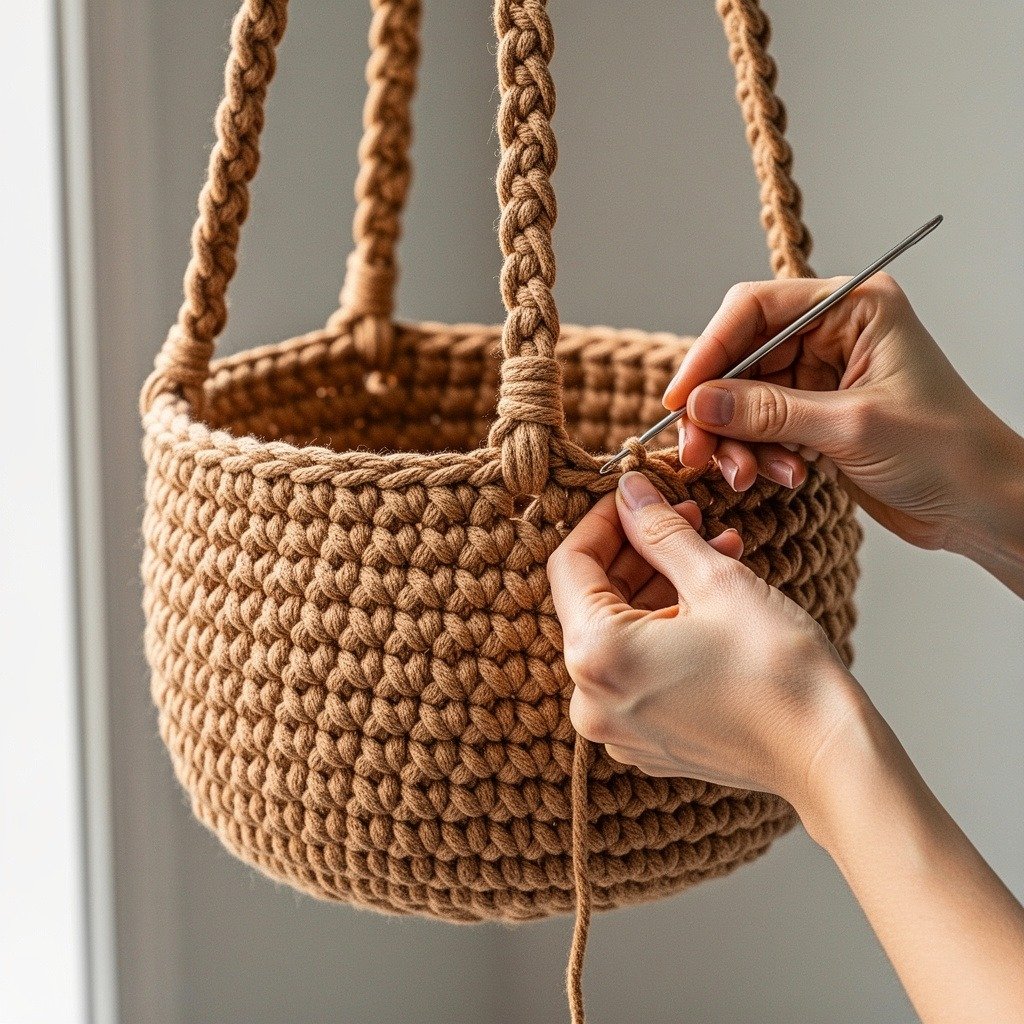 Congratulations! After completing these steps, you’ll have a beautiful DIY crochet hanging basket set.