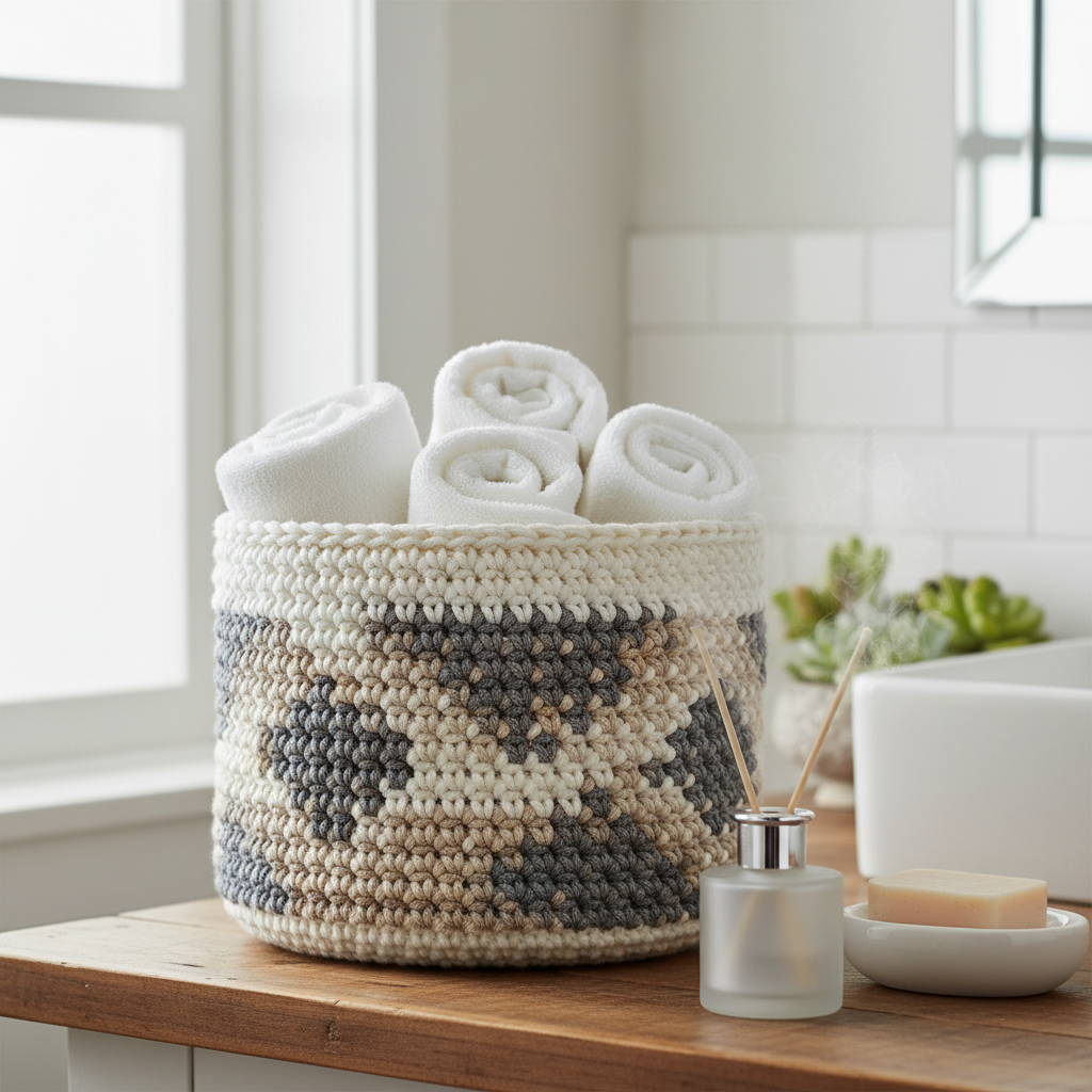 Mosaic Crochet Bathroom Basket Pattern (Free PDF Guide)