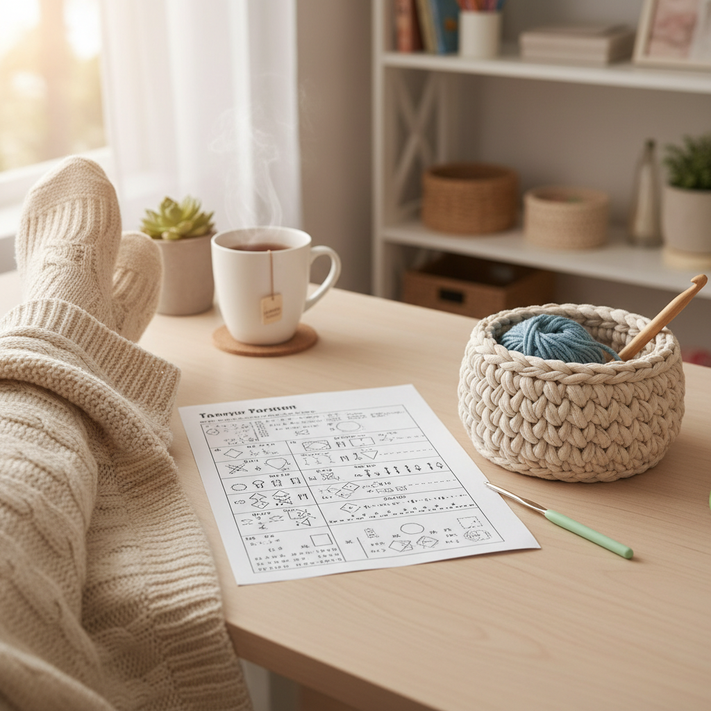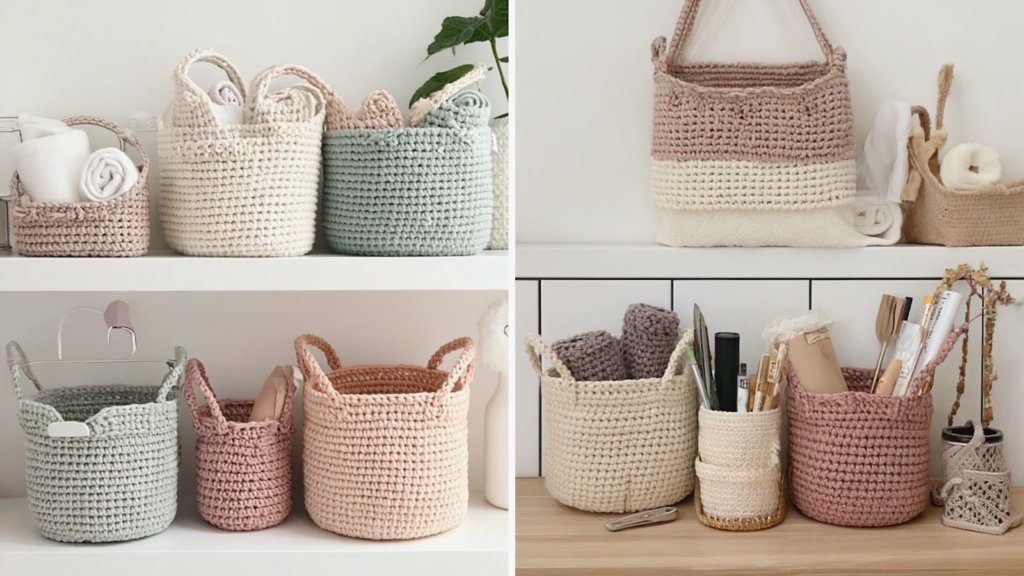 If you’re looking for a stylish and practical crochet project, this mosaic crochet bathroom basket is the perfect DIY. The textured pattern and sturdy ribbon yarn make it ideal for storing toiletries, makeup, towels, or small accessories.